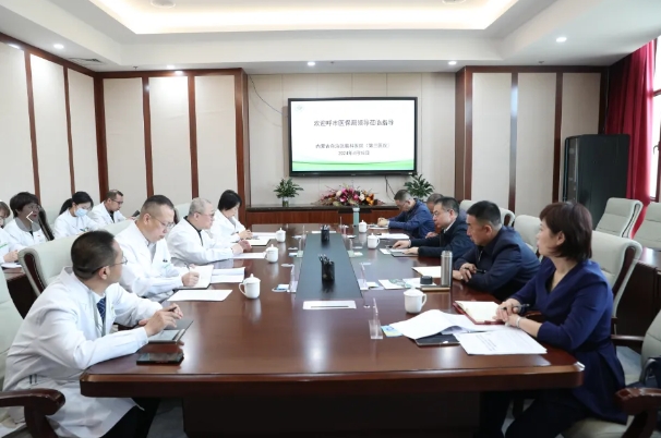 2024年4月18日上午,呼市医保局局长哈顺朝鲁、医疗保险服务中心主任王胜、医保局价采科主任张辉、医疗保险服务中心副主任胡晓芳、财务科主任徐海军一行5人赴澳门金沙鸿盛院区调研并召开座谈会。于东升院长、白银霞副院长及各相关科室负责人陪同。