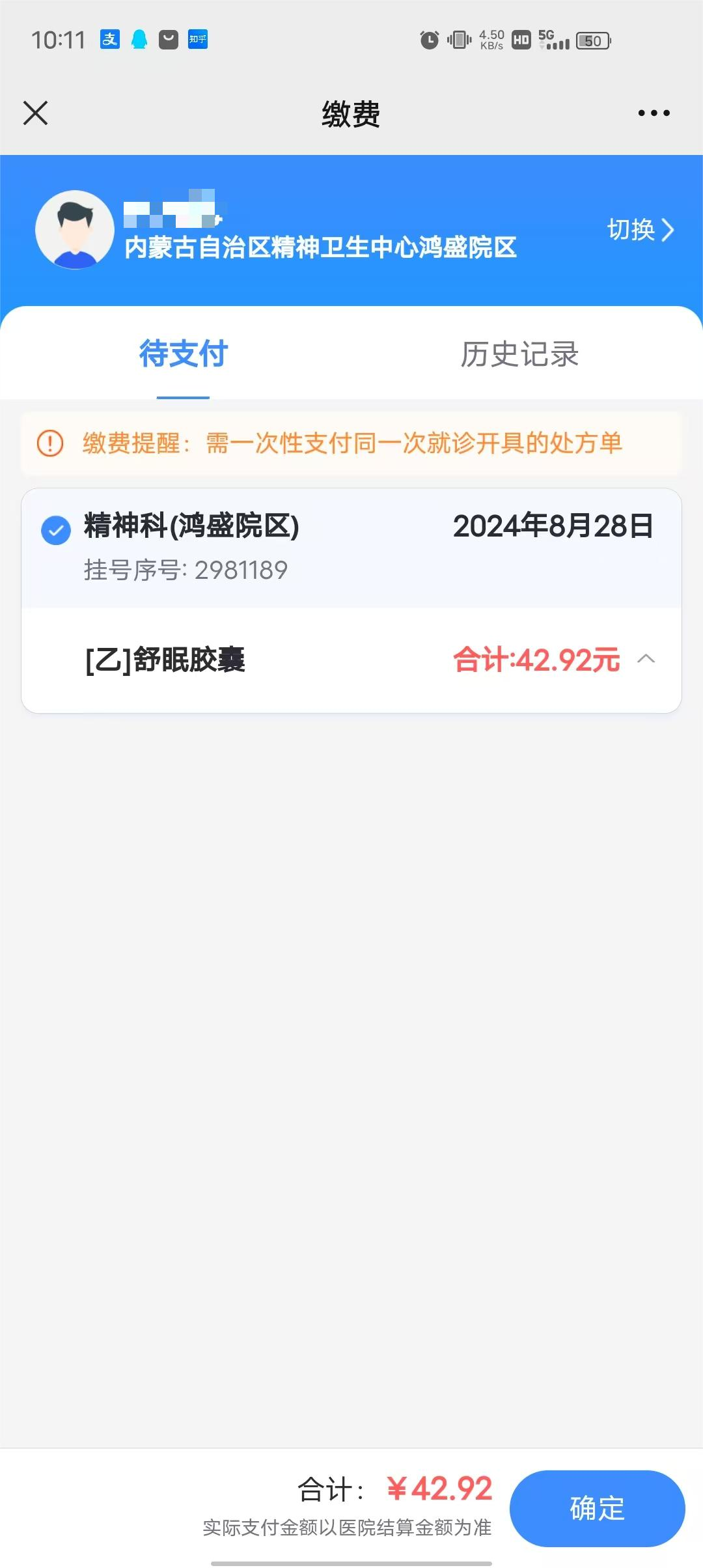 7.微信费用支付,点击“确定”,完成其余费用支付。