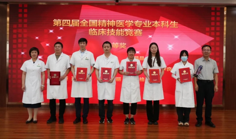 高尚副处长、陈丽霞书记为荣获第四届全国精神医学专业本科生临床技能竞赛“特等奖”师生颁奖