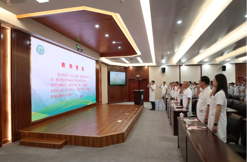 随后,陈丽霞书记肯定了过去一年的教学工作,祝全体老师们节日快乐,感谢了一直在医院教学战线的广大工作者,并提出工作要求。一是坚定理想信念,做红色基因的传承人。二是坚持立德树人,做教育初心的坚守者。三是涵养高尚师德,做塑造学生的大先生。要深入学习贯彻落实二十届三中全会精神、习近平总书记全国教育大会讲话精神、全国卫生健康科教工作会议,高度重视教育教学工作、住院医师规范化培训驻省评估工作,以党建引领医院高质量发展,把人才发展政策落到实处,全院师生共同努力,营造尊师重道的良好氛围,促进“医教研管”齐头并进,实现医院院校教育、毕业后医学教育、继续医学教育教学质量再上新台阶,为实现医院高质量发展和教育高水平人才共同努力!