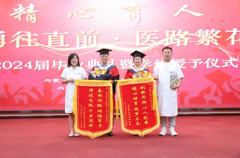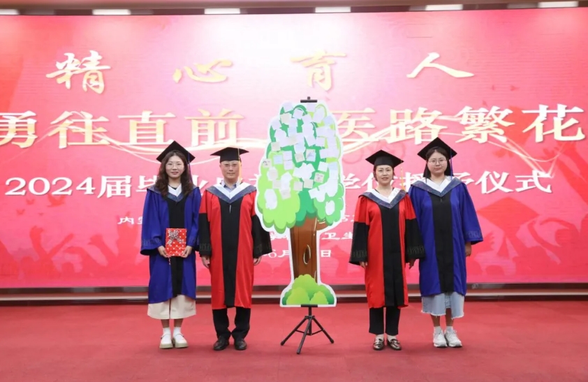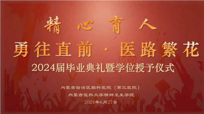 )、内蒙古医科大学精神卫生学院2024届本科生、研究生、住培医师毕业典礼在澳门金沙察布院区五楼会议室举行。党委书记陈丽霞、院长于东升、党委副书记仝利俊、副院长白银霞、黄永清出席典礼仪式。医院全体环节干部、各教研室主任、教学秘书、教师代表、教学部全体老师、在院在培低年级学生约140余人参加。典礼在党委副书记仝利俊的致辞中拉开帷幕,副院长黄永清宣读毕业生名单,随后五位院领导和导师代表张宪武老师、吕东升老师、刘永义老师分别为本科和硕士毕业生拨穗、颁发学位证书,党委书记陈丽霞为住培医师颁发结业通过证并合影留念。