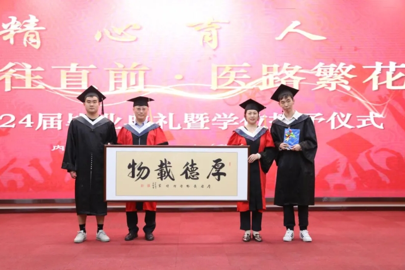 院领导和导师代表为本科和硕士毕业生拨穗、颁发学位证书;为住培医师颁发结业证书