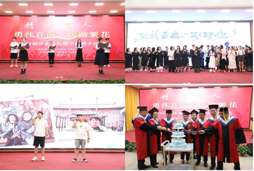 之后,毕业生们向母校献上了一场文艺汇演,表达心中的感谢和依依不舍的离别之情。毕业典礼也在歌声、笑声中落下帷幕。最后,院领导和导师代表也共同为毕业生们切分蛋糕,向2024届全体毕业生送上最真挚的祝福。愿他们在未来的道路上,始终保持着对知识的渴望,对梦想的追求,勇敢地面对挑战,坚定地迈向成功,勇往直前,医路繁花!