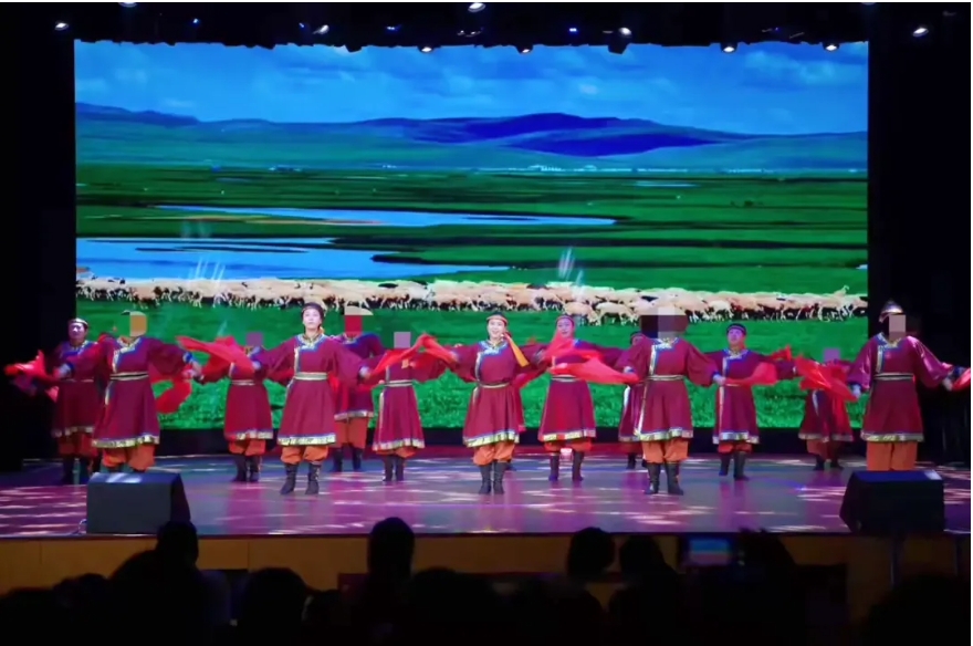 为献礼祖国75 周年华诞,唱响新时代爱党爱国爱人⺠ 的主旋律,残联举办庆祝中华人⺠共和国成立 75 周年内蒙古自治区残联残建融合文艺汇活动,内蒙古自治区脑科医院(澳门金沙 )精神康复一科的康复师和社区康复者共同编排的安代舞《欢庆》参加演出,表达对祖国的热爱和祝福。