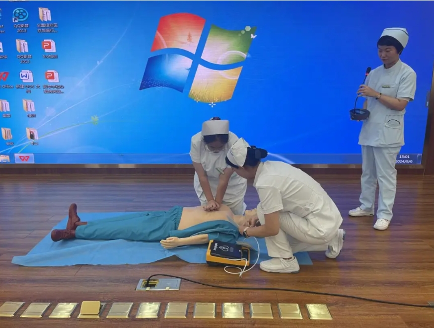 猴痘预防培训由感染管理科曲咏梅主任授课,她通过PPT的形式图文并茂的讲解了猴痘的疫情概况、传播方式、临床表现以及防控措施等多个方面。强调了早期发现、早期隔离、早期治疗的重要性。神经内科主任王建俊、门诊护士长李艳、急诊病房护士长徐丽结合临床实例,分别就心肺复苏操作、除颤仪、简易呼吸球囊使用、过敏性休克的诊治等危急症技能进行细致的讲解,并利用模拟人进行了规范完整的现场操作演示,对操作要领和流程逐一讲解和示范。