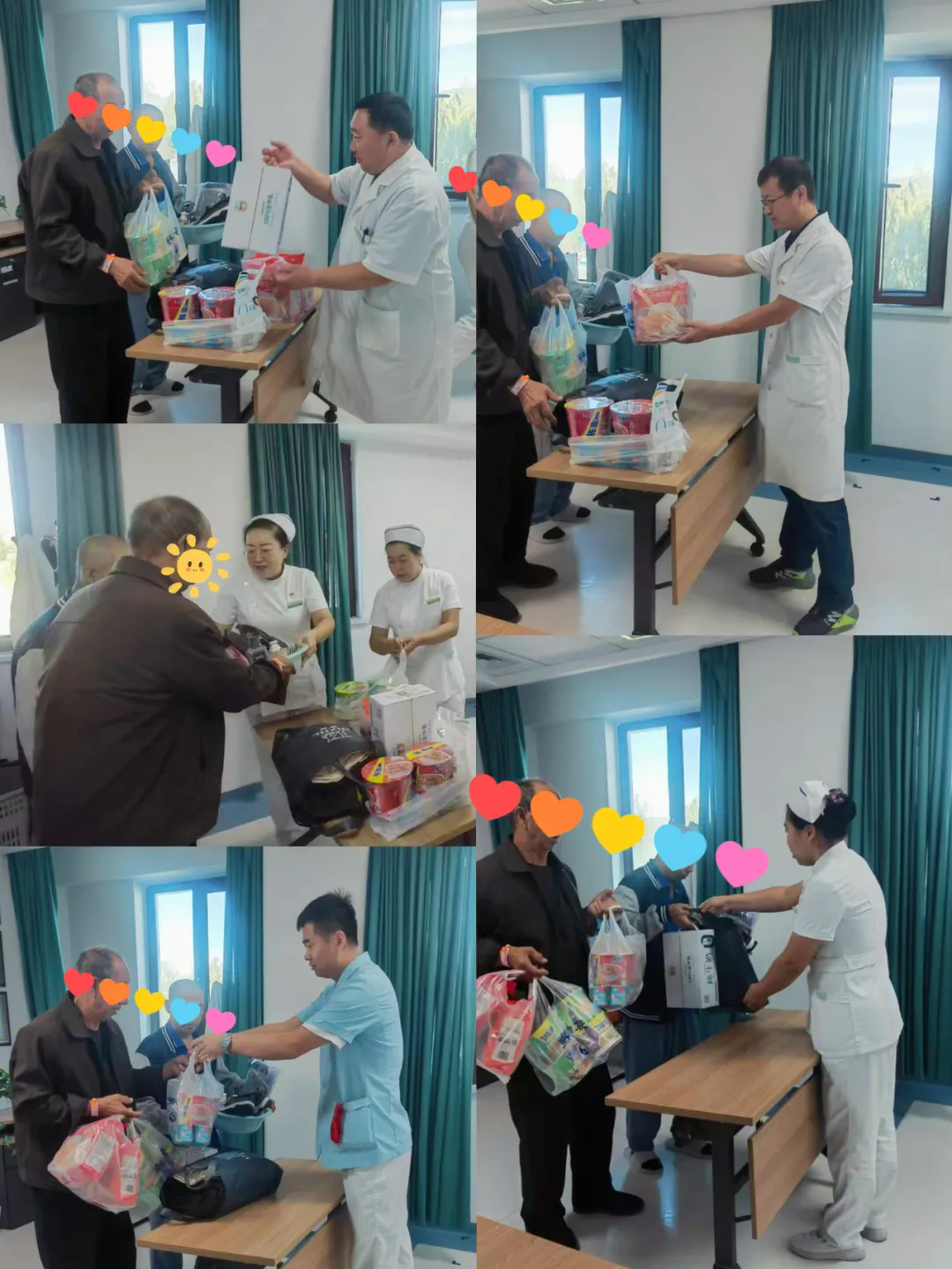 蒙西医结合科白淑英主任和蒋艳护士长在对患者家庭状况了解后,发动科室人员纷纷献出一份自己的爱心,希望能帮助他们。医护人员纷纷伸出援助之手,有捐衣物的、有捐食品的、有捐款的,大家用不同的方式表达出满满的爱心和正能量。捐款捐物数额虽然不多,对这个贫困家庭也许只是杯水车薪,然而,医务人员的心意让家属及患者感到我们这个大家庭的温暖,感受到医院对患者和家属的关爱。