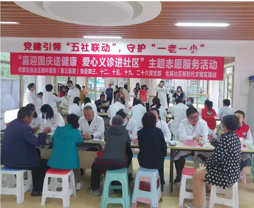 9月27日,第三党支部、第十二党支部、第十五党支部、第十九党支部、第二十六党支部联合北苑社区党委在北苑社区一楼居家养老服务站开展“喜迎国庆送健康,爱心义诊进社区”义诊活动。活动中,为居民提供了心血管内科、消化内科、神经康复、口腔、神经内科、心理咨询等全方位的健康咨询服务。专家们耐心细致地为居民解答各类健康问题,针对不同病症给予专业建议和治疗方案。还设置了血压血糖检测区和健康知识宣传区,为居民提供免费检测服务。