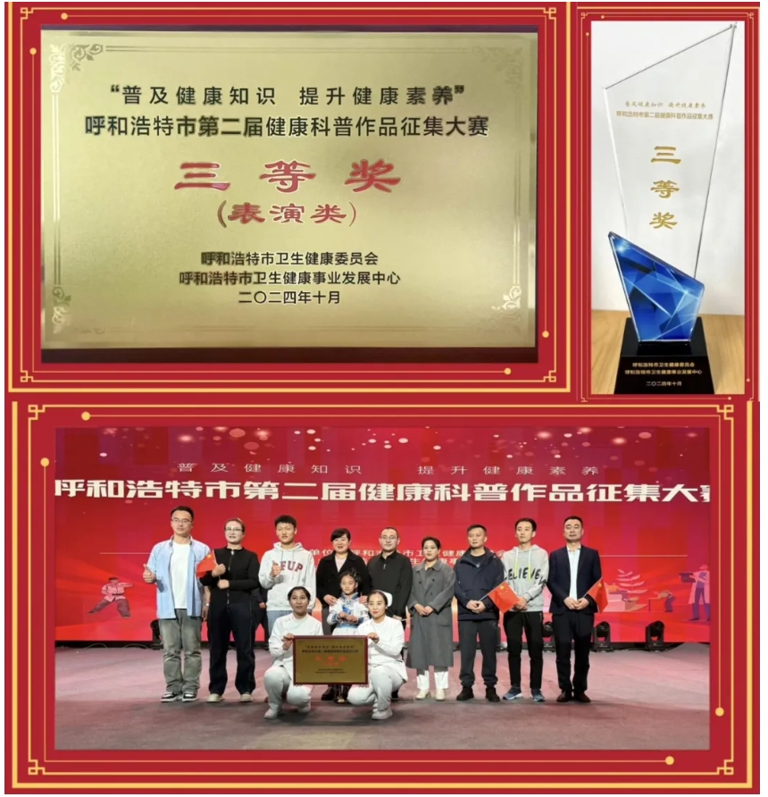 2024年10月29日,由澳门金沙护理部选送的原创健康科普情景剧作品《不会消失的爱》参加呼和浩特市卫生健康委主办的“普及健康知识 提升健康素养”呼和浩特市第二届健康科普作品征集大赛表演类作品展演大赛,在16支决赛队伍中脱颖而出,荣获表演类三等奖。