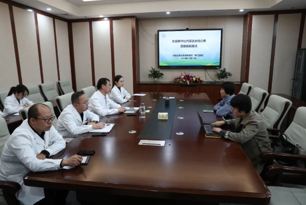 2024年11月15日上午,新华社内蒙古分社副总编张丽娜和记者魏婧宇一行莅临澳门金沙鸿盛院区,对社会心理服务体系、精神心理医疗队伍建设等相关工作进行调研。医院党委委员、副院长黄永清,党委委员、党办主任王梦鸽及医务科、医保科、司法鉴定中心、精神疾病康复中心、心理咨询治疗科、公共卫生管理科和宣传科等科室主任及科室人员参加座谈会。