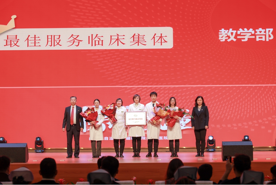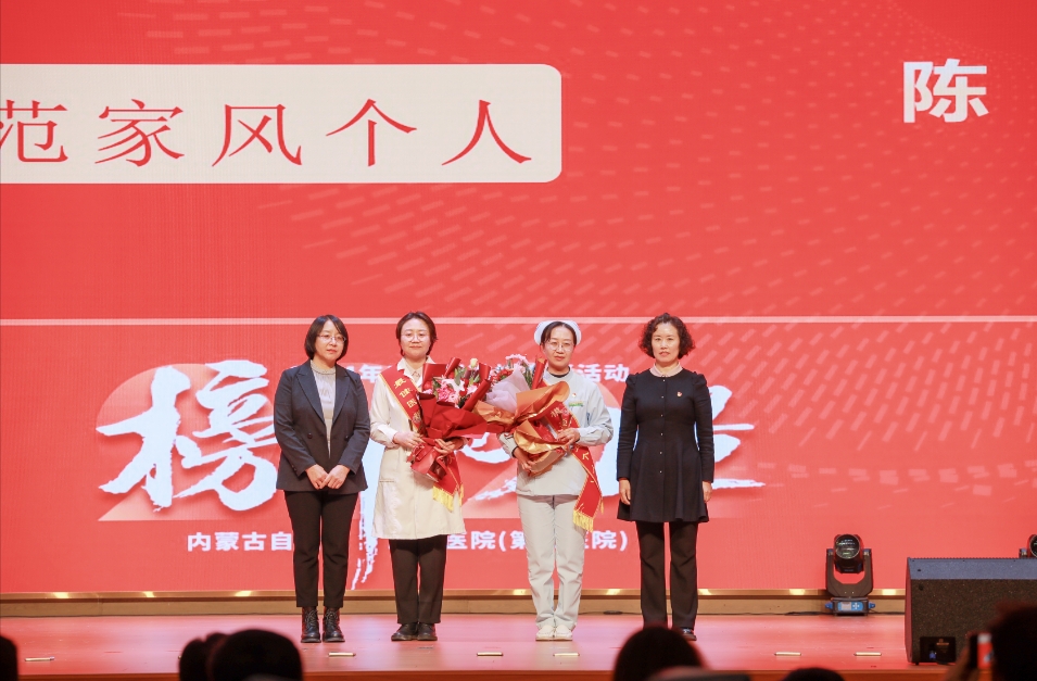 之后,自治区卫生健康委党组成员、副主任隋晓杰发表讲话,对获奖个人和集体表示祝贺,对医院在党建引领下取得的成绩给予充分肯定。他强调,榜样的力量是无穷的,希望受表彰的同志珍惜荣誉、再接再厉,号召全院职工以榜样为标杆,积极进取,为自治区医疗卫生事业发展贡献更多力量。同时,对分管部门和第三党建责任区的各单位提出几点要求,一是要深入学习党的理论,特别是在深入学习贯彻习近平新时代中国特色社会主义思想上要下更大功夫。二是要强化责任担当,各单位党组织要切实履行好党建工作责任。三是要持续推动党建创新,“榜样的力量”典型选树活动等优秀经验,要及时总结和推广,特别是要深入挖掘和展示各单位在党建和业务工作结合方面的创新做法。四是要提升工作质量和服务水平,提高患者的满意度。