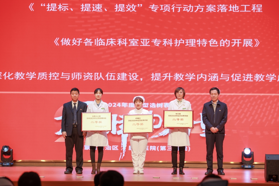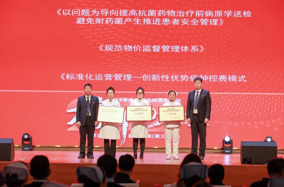 在激昂的音乐声中,表彰仪式正式开始。本次榜样的力量——2024年度典型选树表彰涵盖了“最佳科普宣传个人”、“最佳医德医风个人”、“最佳模范家风个人”、“最佳师德先进个人”、“最佳科研创新个人”、“最佳医疗先锋个人”、“最佳精心护理个人”、“最佳行业模范个人”及“最佳服务临床集体”、“最佳技术模范集体”和“最佳精细运营集体”等12个个人和集体,以及在运营管理项目中获一、二、三等奖的各项目。颁奖领导为各获奖者颁发奖杯和鲜花,鼓励他们在各自工作岗位上取得的成就。
