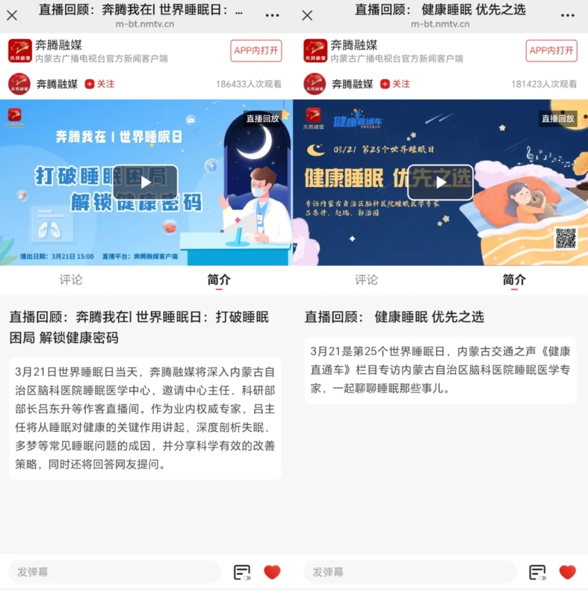今年3 月 21 日下午,内蒙古自治区脑科医院策划开展了两场聚焦世界睡眠日的直播活动,吸引了近40万观众在线参与,引发了社会对于睡眠健康问题的广泛关注。