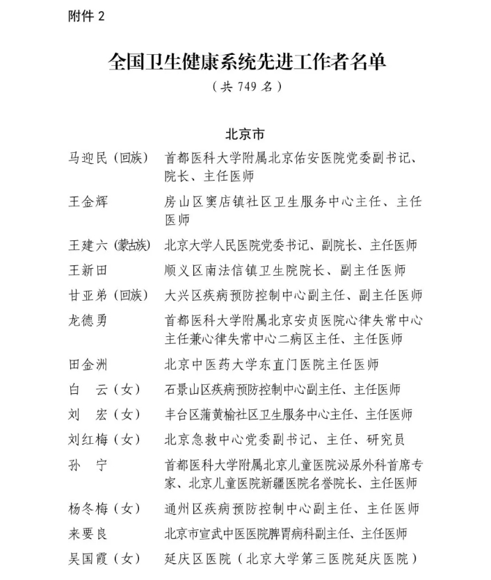 【喜报】澳门金沙田常青主任荣获全国卫生健康系统“先进工作者”称号