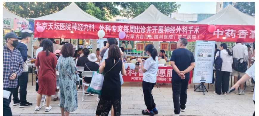 活动现场,内蒙古自治区脑科医院精心打造的“硬核体验区” 成为一大亮点。蒙西医结合科与中西医结合科专家化身 “健康魔法师”,针对失眠、抑郁等现代都市病,运用耳穴压豆、针灸等特色中蒙医技法,为市民量身定制个性化调理方案,帮助他们重焕身心活力。心理咨询与治疗部联合儿童青少年心理卫生医疗中心打造的 “情绪充电站” 人气爆棚,免费提供的专业心理测试与趣味解压游戏,让市民在轻松互动中释放压力、舒缓情绪。而精神康复一科的 “色彩疗愈空间”,通过展示康复者创作的精美画作与手工艺品,传递出积极向上的康复理念,吸引众多市民驻足品味。此外,神经认知中心、睡眠医学中心等多学科专家坐镇咨询区,不仅耐心解答病情,提供专业诊疗方案,还从饮食、运动等多维度给予科学健康指导,全方位守护市民健康。