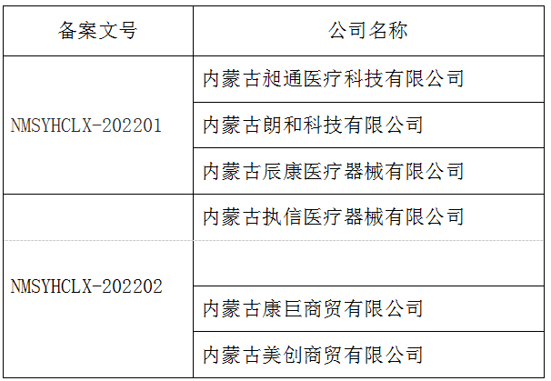 二、备案文号:NMSYHCLX-202201;NMSYHCLX-202202