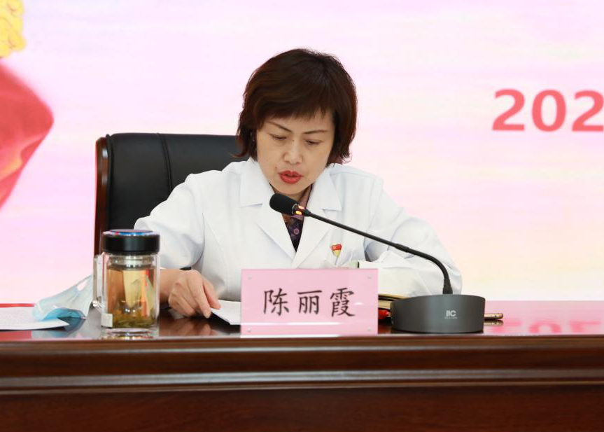 陈丽霞副院长传达了许宏智主任在全区卫生健康系统党建和党风廉政建设工作视频会议上的讲话。