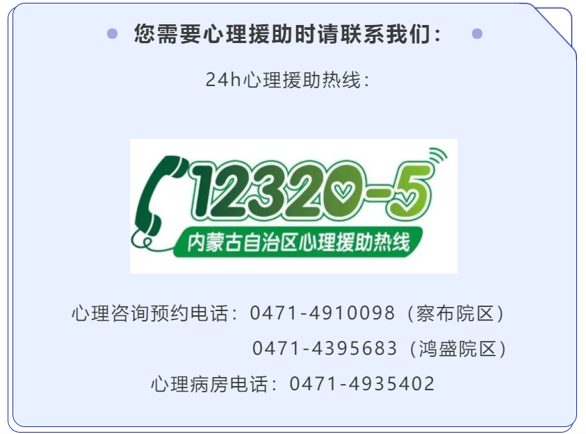 内蒙古自治区内,直接拨打12320,语音提示以后转5号键的心理援助热线。